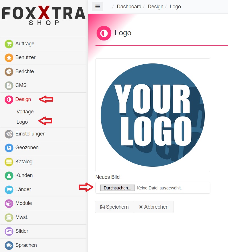 Ihr Firmenlogo das Sie auf Ihrem Computer abgelegt haben können Sie nun hochladen und speichern.